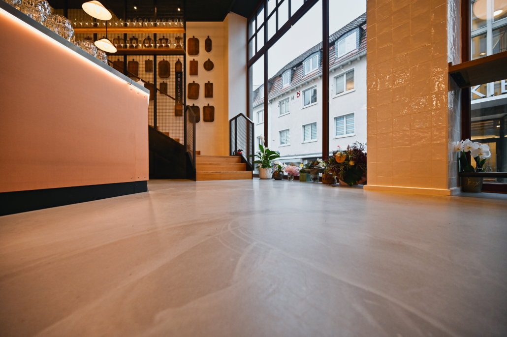 Ein Highlight unserer Arbeit im TONDAS liegt den Gästen buchstäblich zu Füßen. Statt auf Standardlösungen zu setzen, haben wir einen hochwertigen Spachtelboden realisiert.