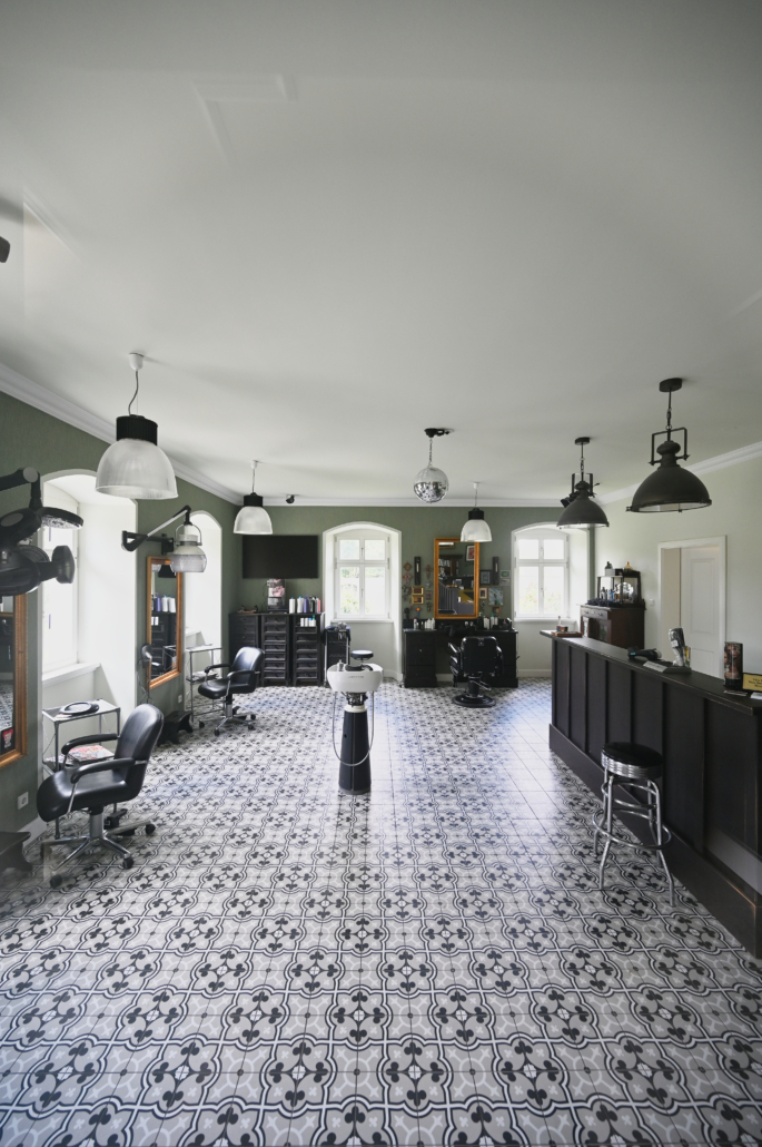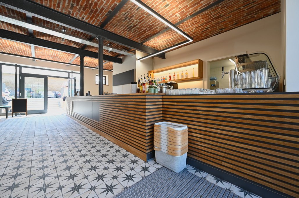 Im sogenennten L-Bau hat DAMIAN WERNER den Untergrund gereinigt, abgedichtet und grundiert, Unebenheiten ausgeglichen und mit Edelstahl-Trennschienen sowie mit Bodenfliesen in 30×60 cm ein perfektes Finish geschaffen. Ein besonderes Highlight ist der maßgefertigte Reinstreifer von 2×2 m, der für optimale Sauberkeit sorgt.